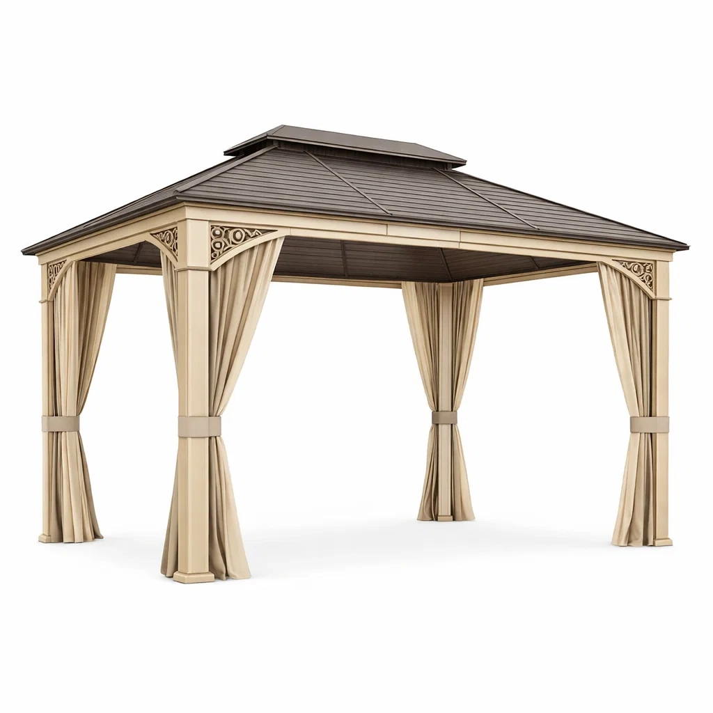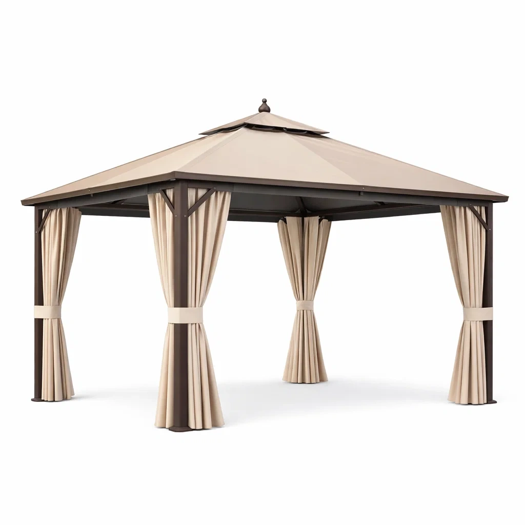 Gazebo da Giardino in Metallo con Tetto in Poliestere Beige