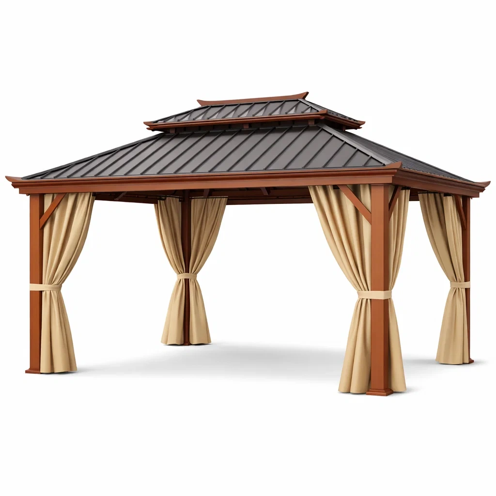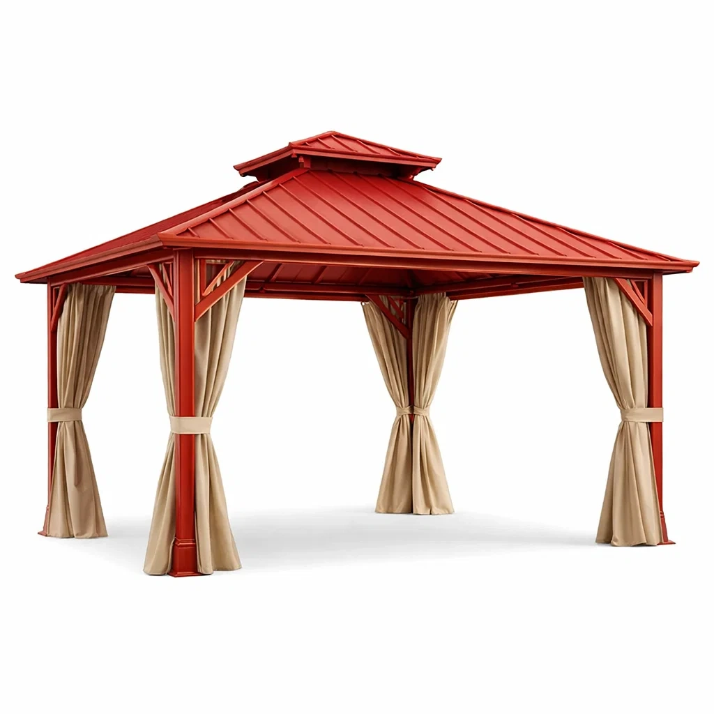 Gazebo rettangolare in Metallo con Tetto Rosso e Tende in Poliestere