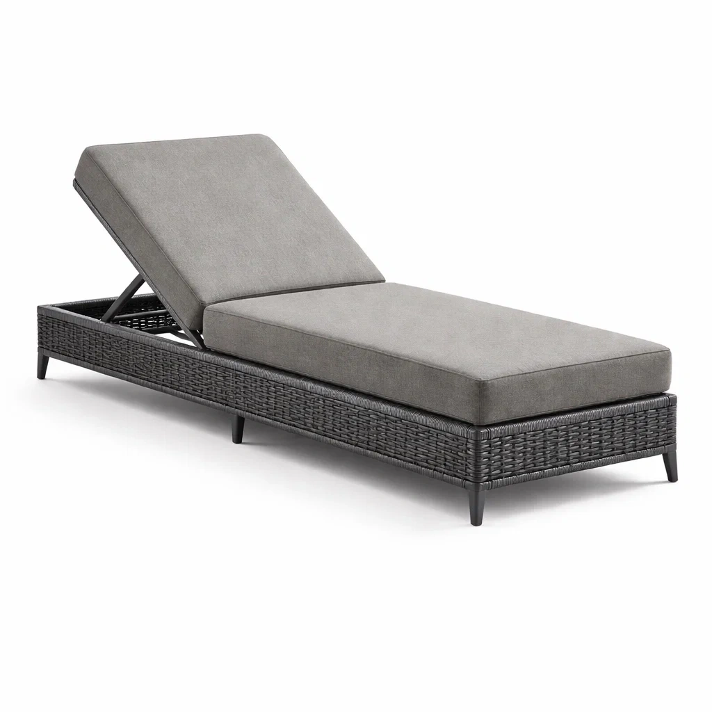 Lettino prendisole in Rattan con Cuscino in Poliestere Grigio