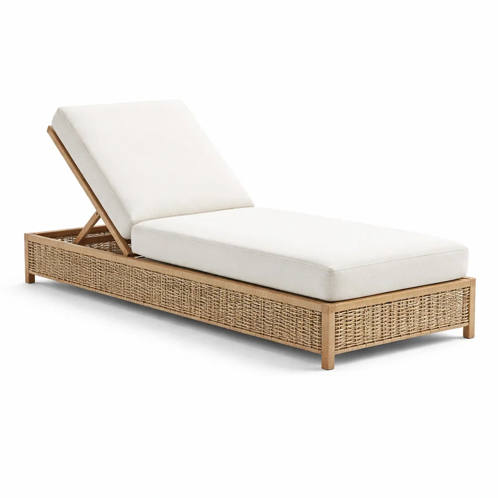 Lettino prendisole in Legno e Rattan con Rivestimento Bianco