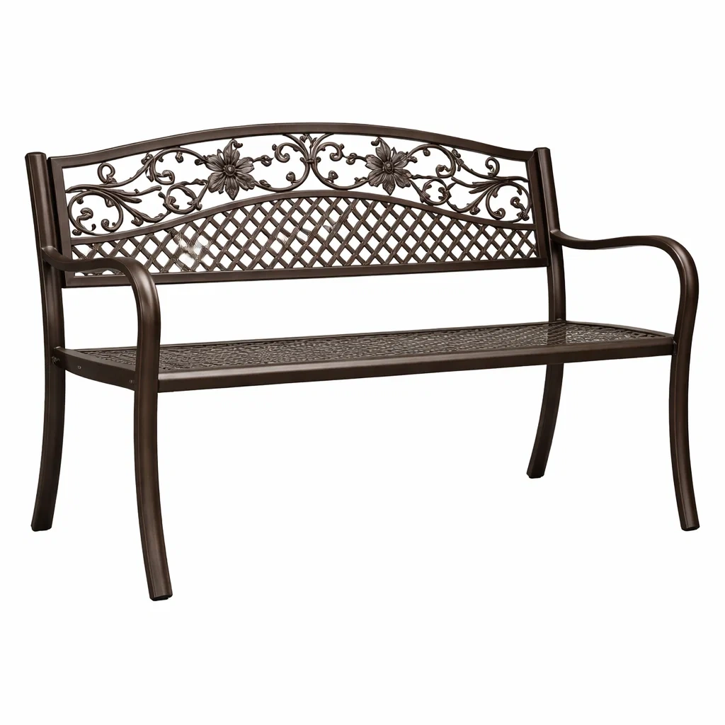 Panchina in Metallo Marrone con Motivo Floreale