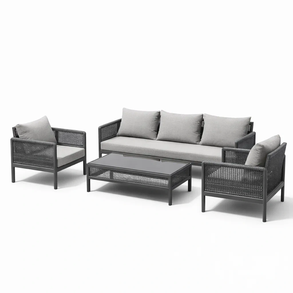 Set da conversazione da Esterno in Lega di Alluminio con Cuscini in Tessuto Grigio