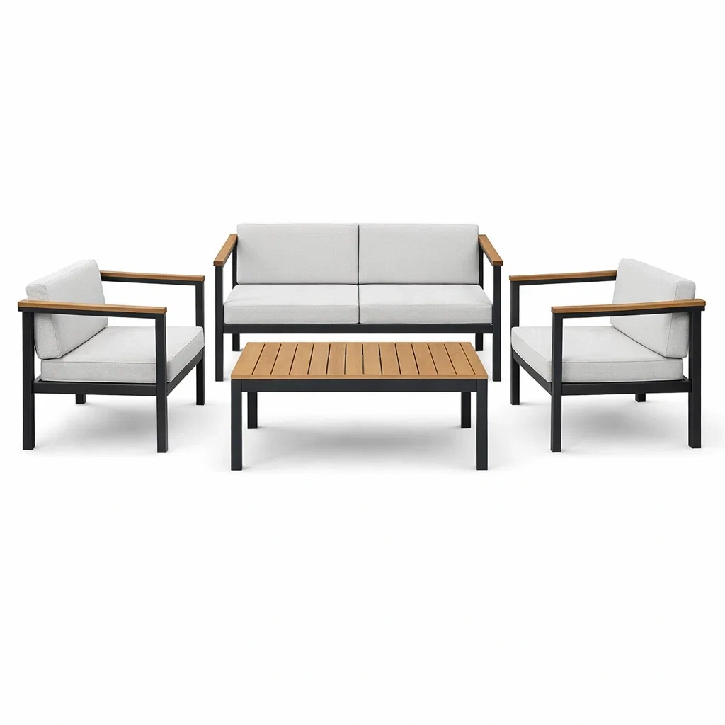 Set da conversazione da Giardino in Metallo e Legno con Cuscini Grigi
