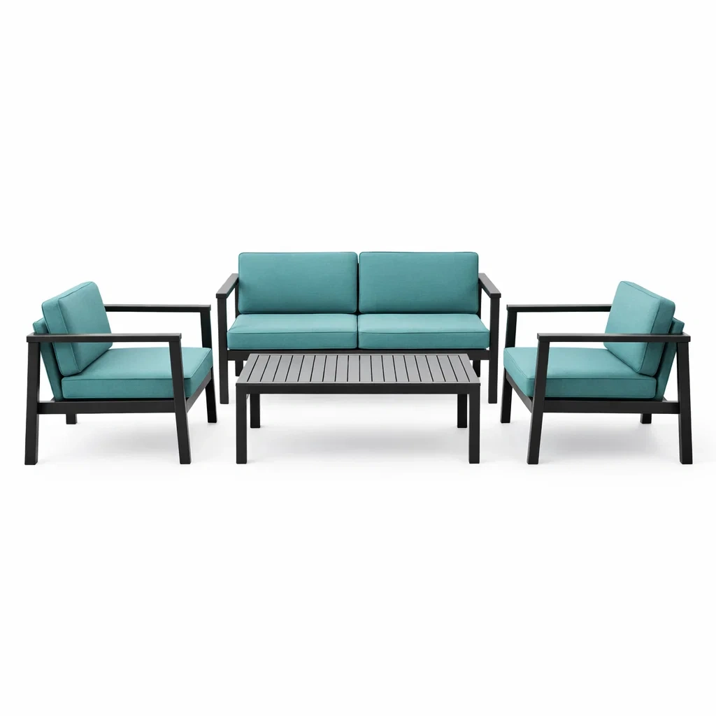 Set da conversazione da Giardino in Alluminio con Cuscini in Poliestere Turchese