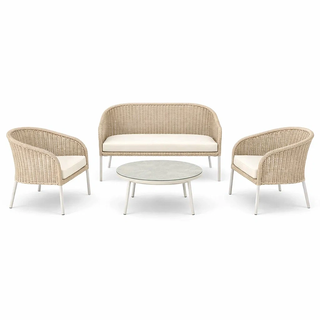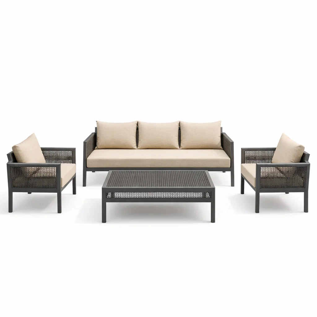 Set da conversazione da Giardino in Alluminio e Tessuto con Cuscini Beige