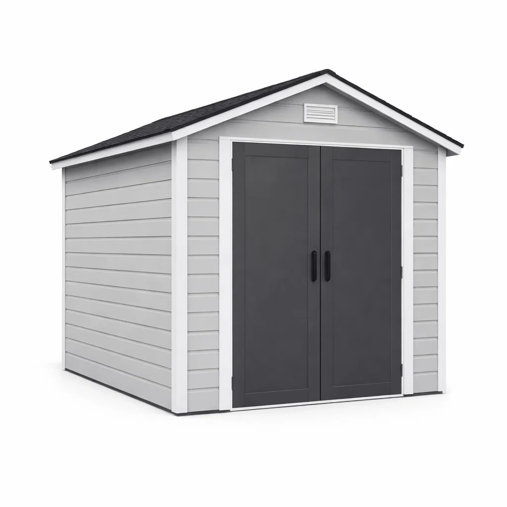 Casetta da giardino in Resina e Legno con Porta Doppia Grigio e Nero