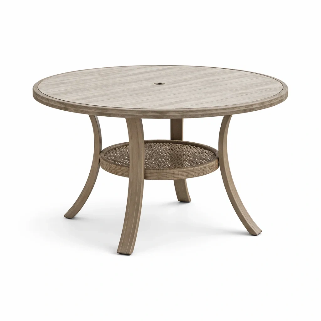 Tavolo rotondo da Esterno in Legno e Vimini Marrone