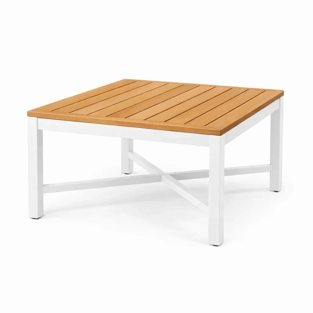 Tavolo quadrato da Esterno in Teak con Telaio in Alluminio Bianco