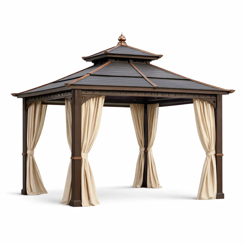 Gazebo in Alluminio con Tetto in Policarbonato e Tende in Poliestere