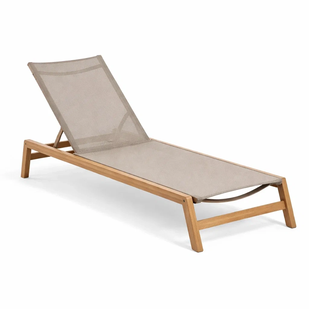 Lettino prendisole da Giardino in Legno e Poliestere Beige Regolabile Dimensioni 200 x 65 cm