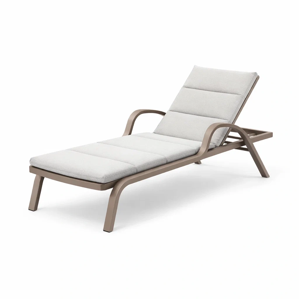 Schienale regolabile e braccioli curvi. Protetto dai raggi UV e resistente all'acqua per uso esterno.