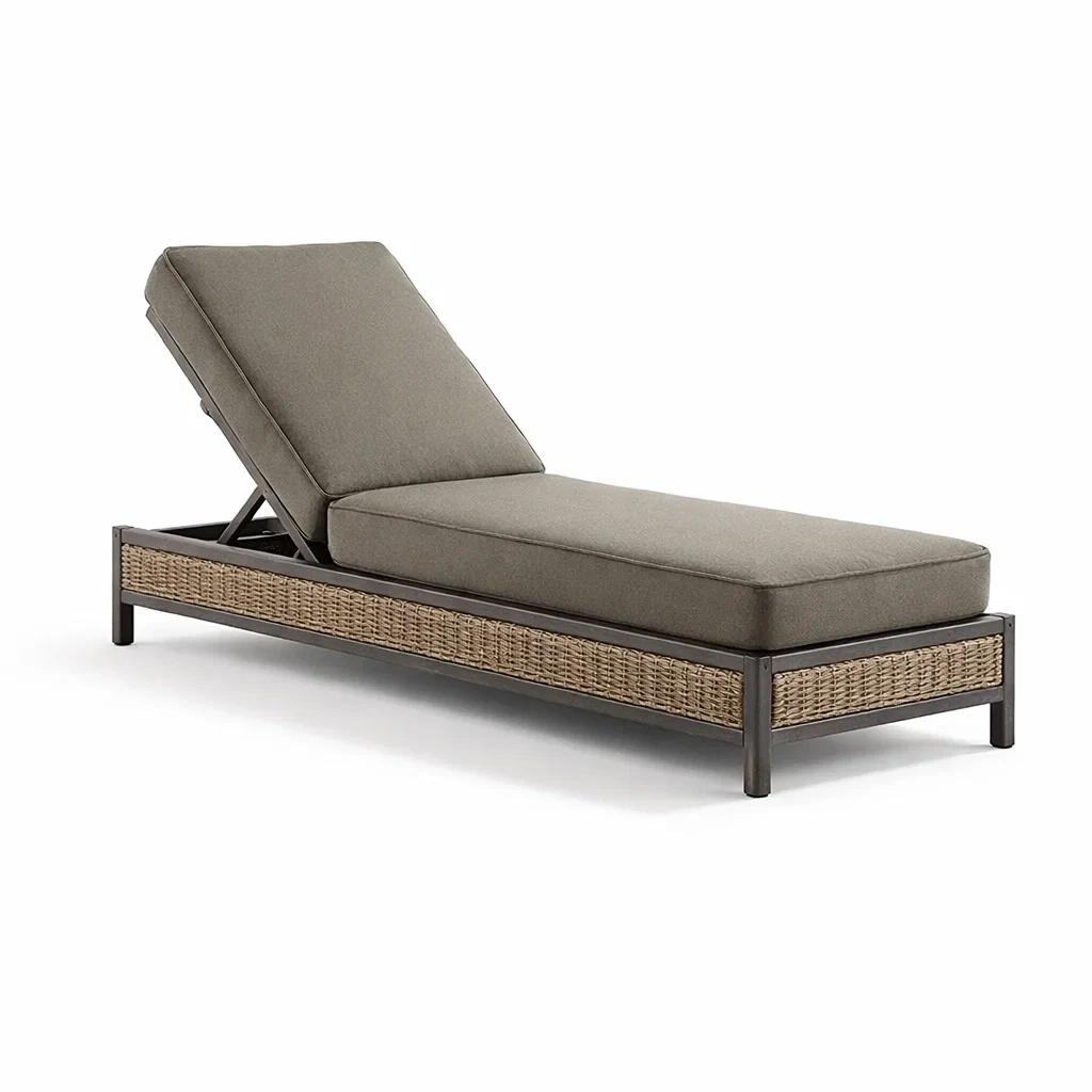 Lettino prendisole in Metallo Poliestere e Rattan Marrone
