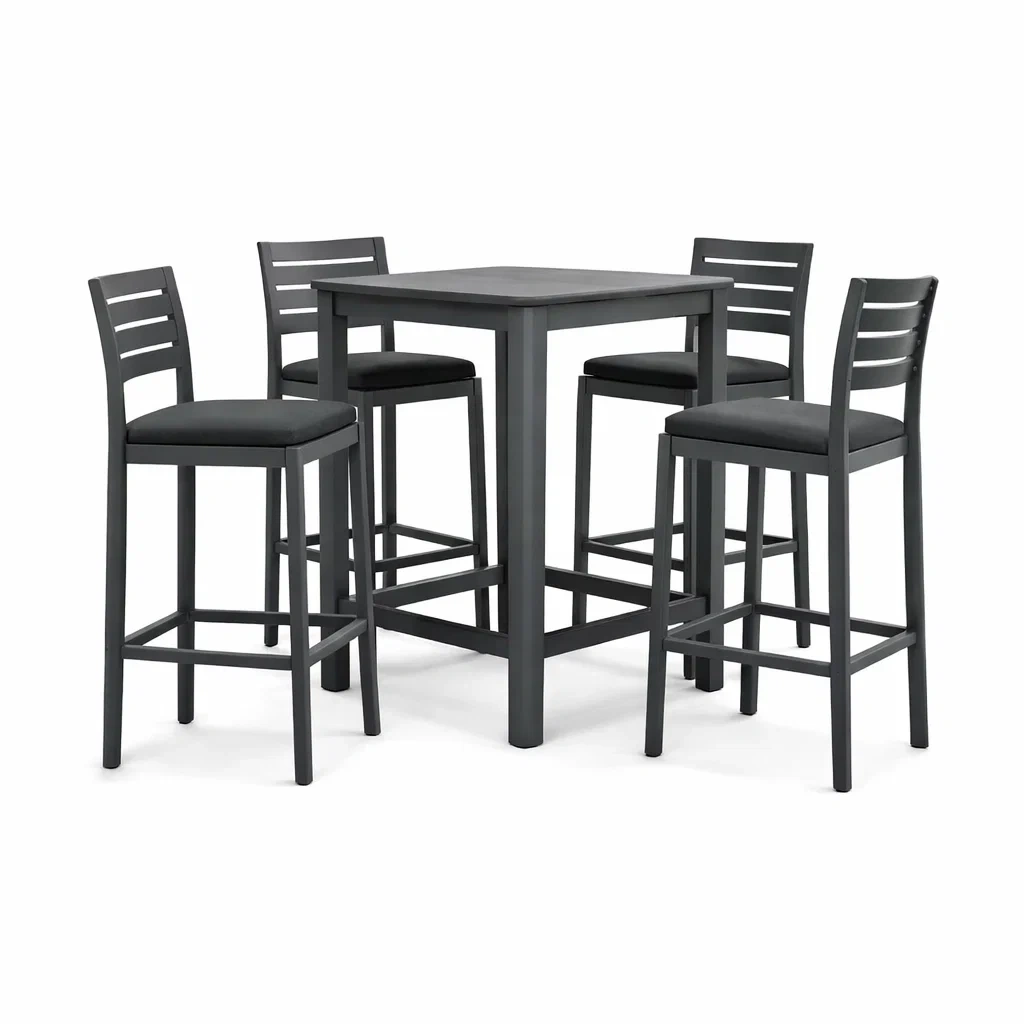 Set di mobili composto da un tavolo e quattro sgabelli.