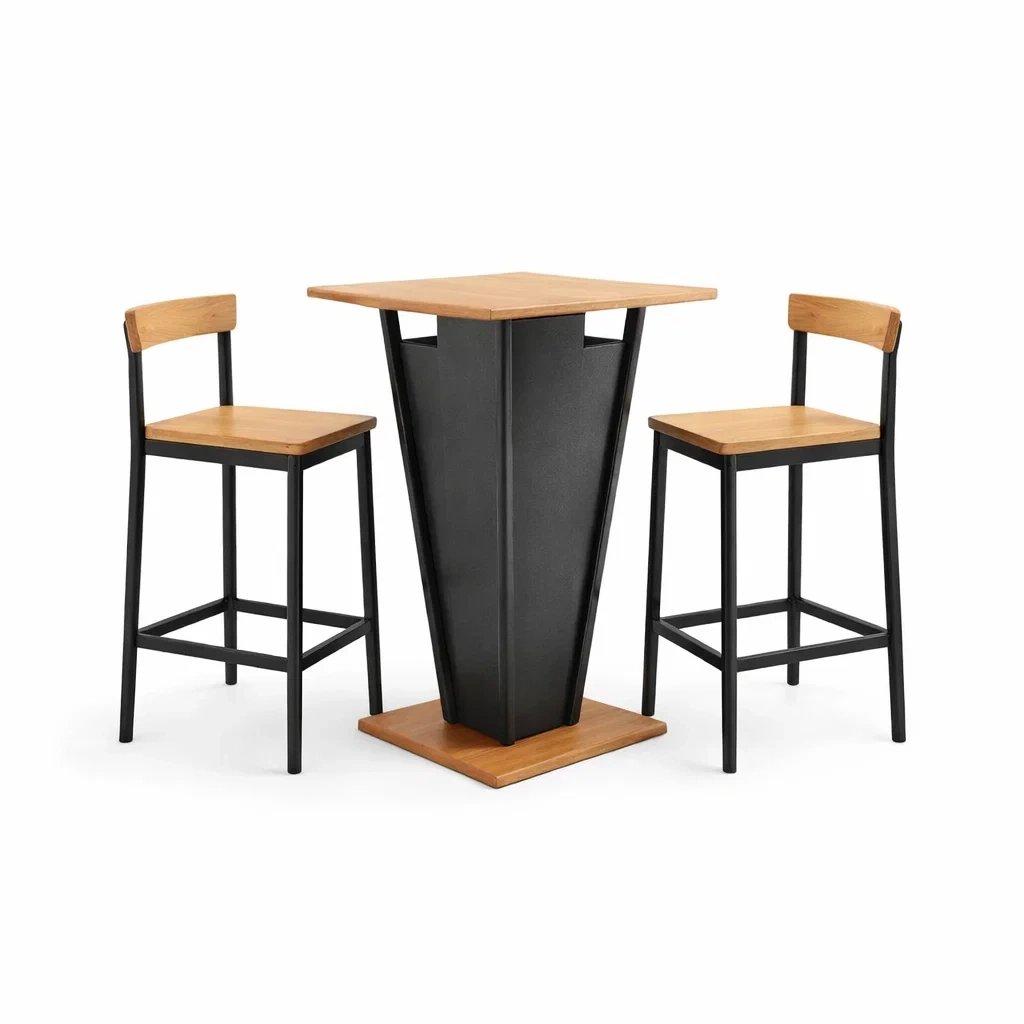 Set da bar in Legno e Metallo Nero con 2 Sgabelli